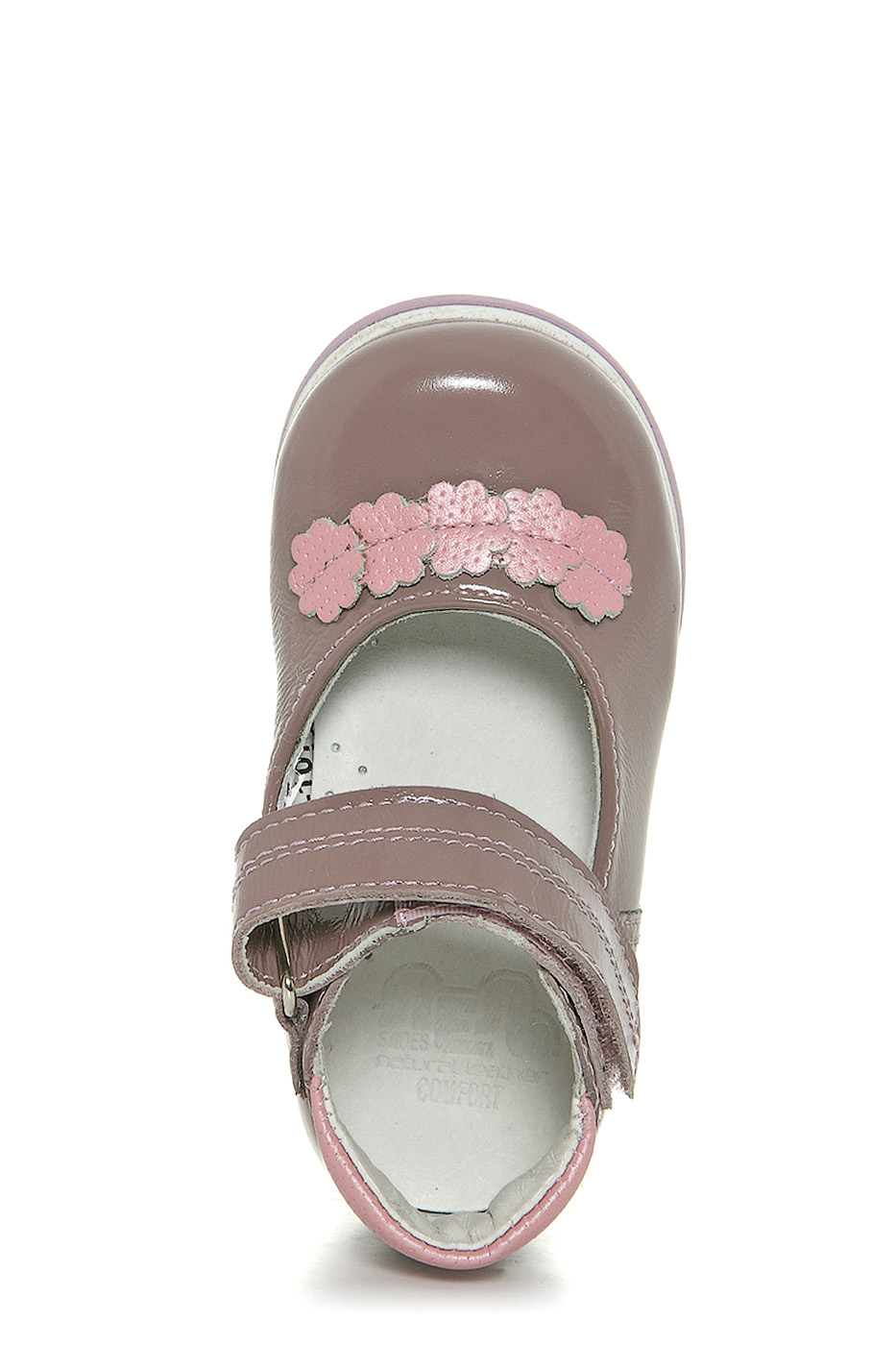 Замечательные ясельные туфельки Лель с закрытым мыском и усиленной пяточкой станут любимой обувью Вашей маленькой принцессы. Верх модели выполнен из натуральной кожи. Для фиксации модели на ноге предусмотрен ремешок с застежкой-липучкой. Внутренняя отделка и анатомическая стелька из натуральной кожи, обеспечит максимальный комфорт даже при длительном ношении.