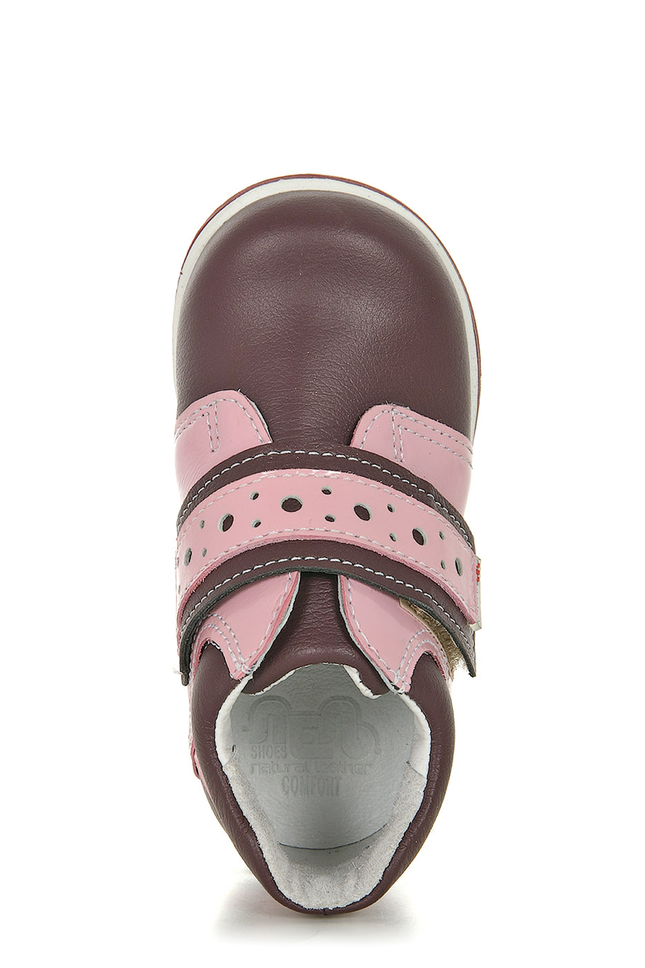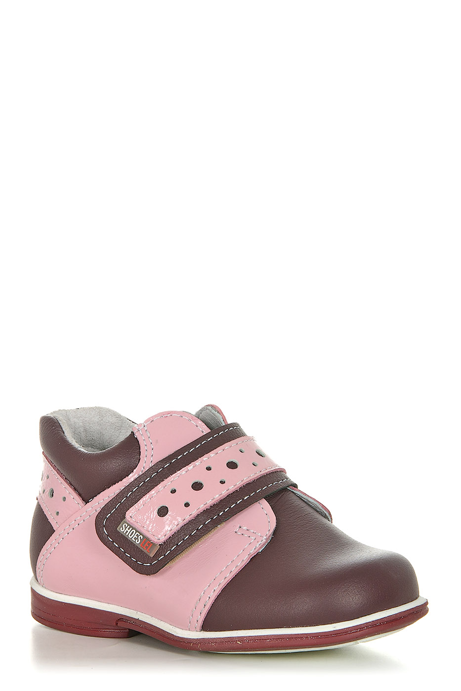 Замечательные ясельные ботиночки Лель с закрытым мыском и усиленной пяточкой станут любимой обувью Вашего малыша. Верх модели выполнен из натуральной кожи бордового цвета и декорирован вставками из розовой лакированной кожи. Для фиксации ботинка на ноге предусмотрен один большой ремешок с застежкой-липучкой. Внутренняя отделка и анатомическая стелька из натуральной кожи обеспечат максимальный комфорт даже при длительном ношении.