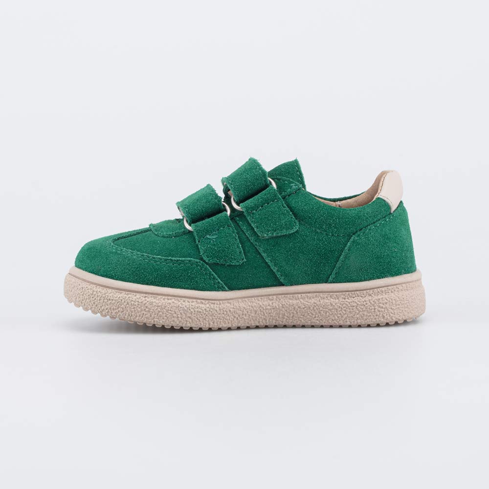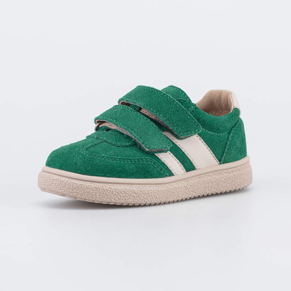 Детские велюровые полуботинки выполнены в сочетании трендовых цветов: зеленого и бежевого. Подходят для мальчика дошкольного возраста.