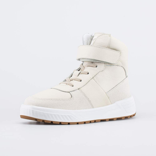 Верх изготовлен из натуральной кожи в сочетании светлых оттенков. Носочная и пяточная части защищены дополнительной кожаной накладкой с полиуретановым покрытием.