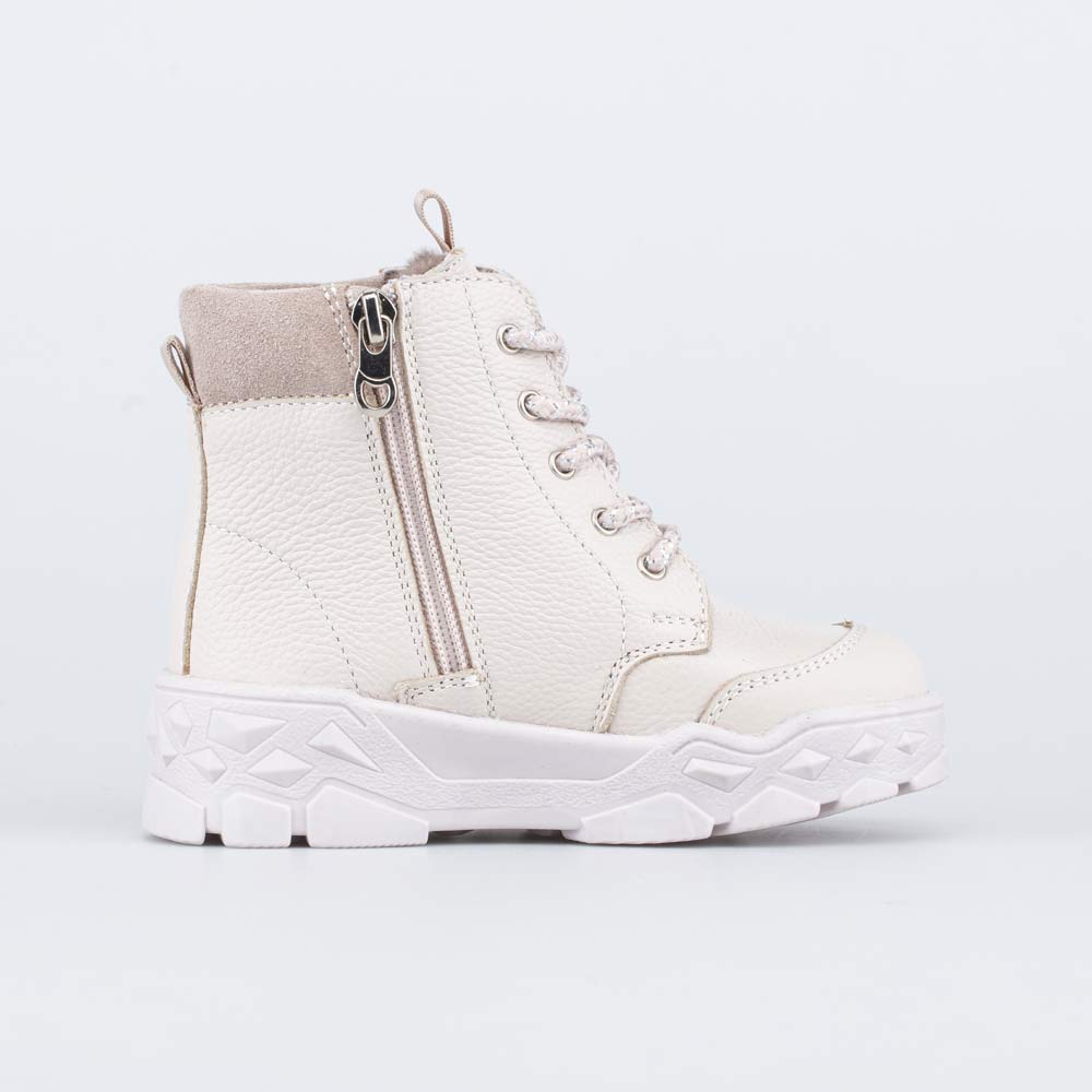 Зимние ботинки на молнии подходят для девочки, которая только начинает ходить. Верх и классический язычок выполнены из натуральной гладкой кожи.