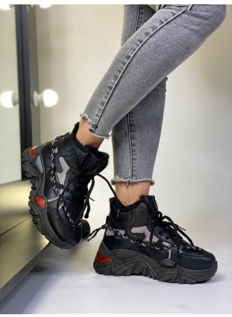 Бриллиант M888-1 Кроссовки чер иск кожа, подклад иск мех