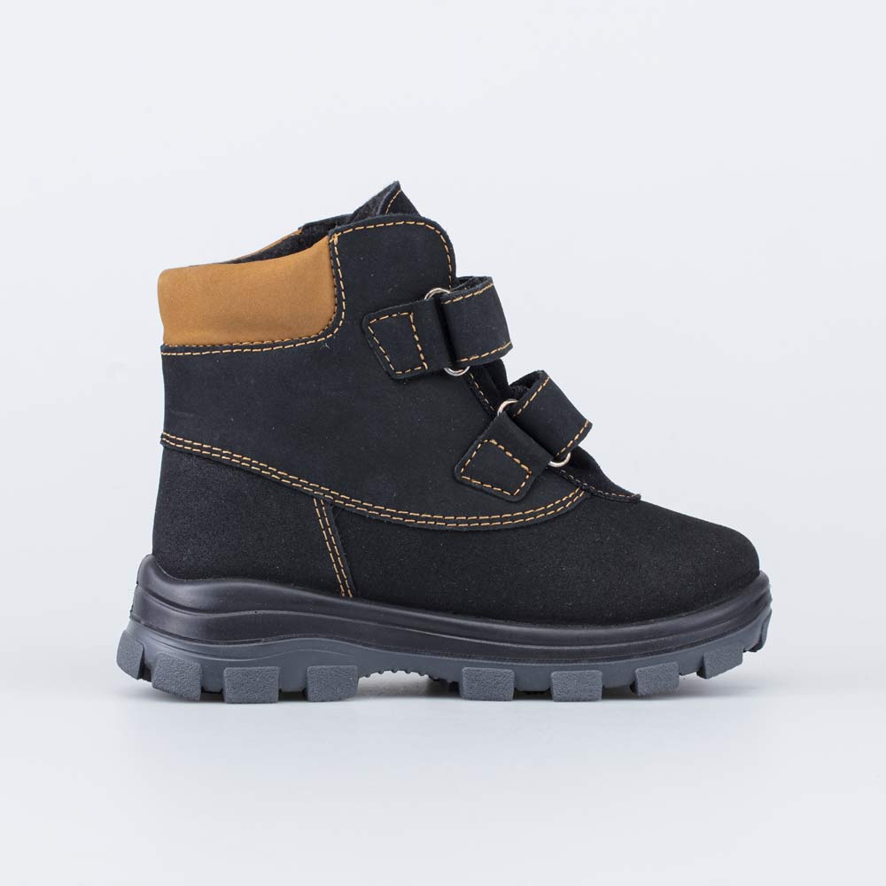 Зимние ботинки на липучках выполнены из натуральной кожи и предназначены для мальчика.