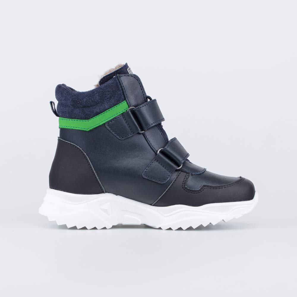 Кожаные зимние ботинки для мальчика на натуральном меху синего цвета