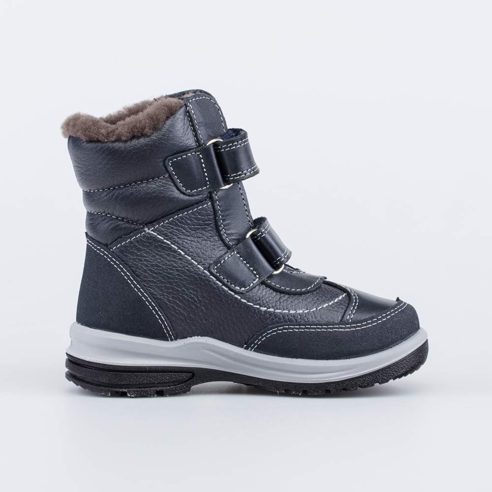 Кожаные зимние ботинки для мальчика на натуральном меху синего цвета