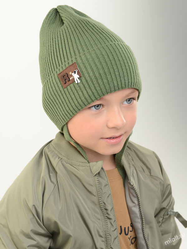 Дополнение: Шапка для мальчика на подкладке без утеплителя, с отворотом, с завязками. Декор- шеврон, подвеска