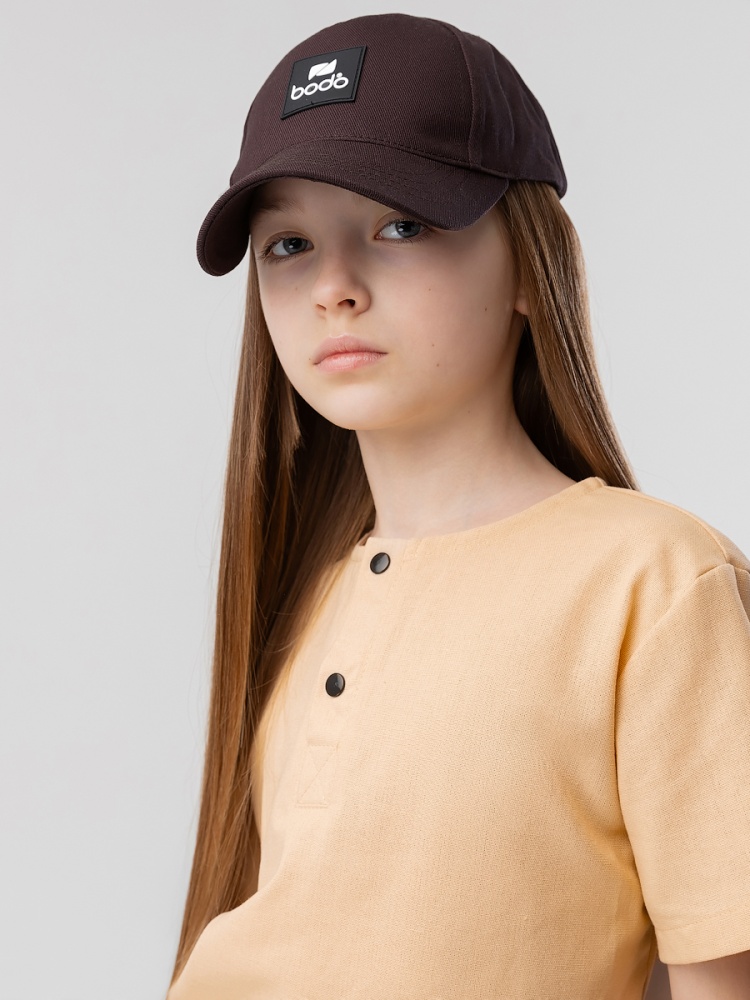 Материал твил Состав 100% хлопок Стильная бейсболка с козырьком - незаменимый летний аксессуар для каждого ребенка.Классическая модель бейсболки с глубокой посадкой и средним, слегка изогнутым козырьком. Состав: твил 100% хлопок