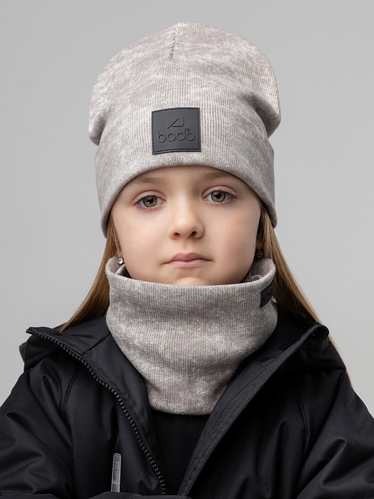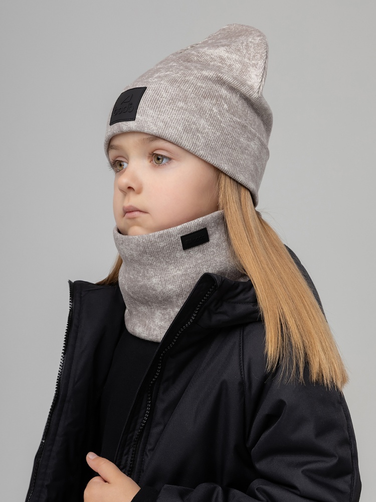 Комплект (шапка, снуд) с ПВХ нашивкой 13-162MU; серо-бежевый
