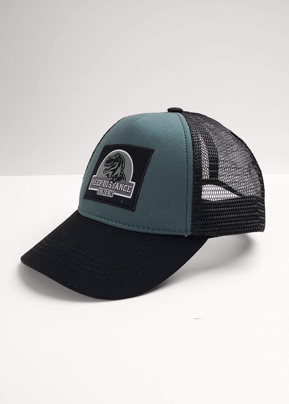 Детская бейсболка. Модель сшита из 6-ти клиньев, вставка из сетки в затылочной части обеспечивает вентиляцию. Размер бейсболки 52-54, регулируется при помощи пластиковой застежки. Декорирована жаккардовой нашивкой "динозавры".