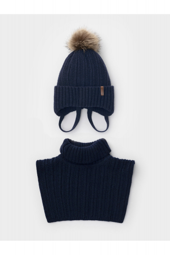 Комплект зимний детский: шапка и снуд из полушерсти. Тёплая вязаная шапка с отворотом на подкладе из флиса. Украшена нашивкой из искусственной кожи. Узкий снуд без оборотов вокруг шеи. Изделие сохраняет форму и стойкий цвет после многочисленных стирок.