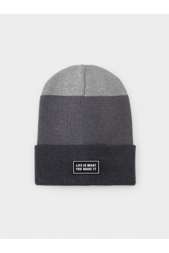 Тёплая зимняя шапка с подкладом из хлопкового трикотажа. Верх выполнен из полушерстяной пряжи. На макушке помпон.