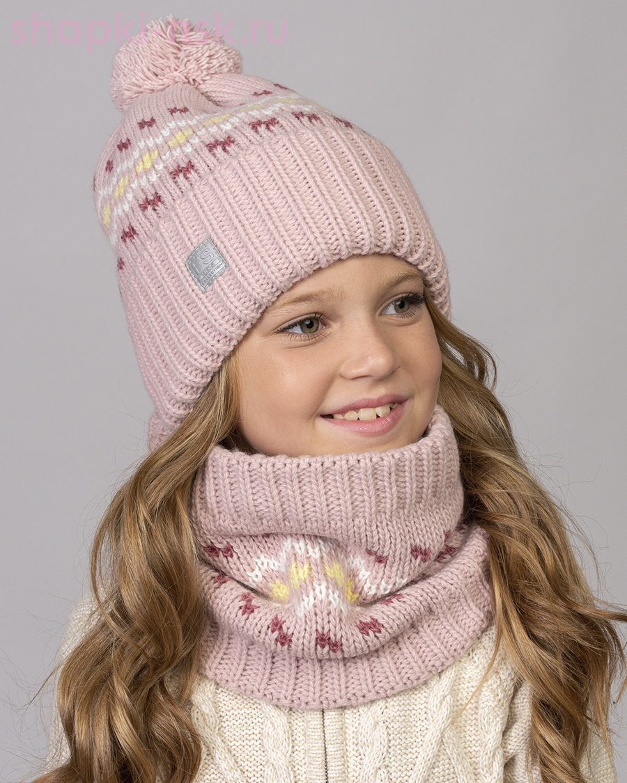 Q 155 D 155 Комплект для девочки флис (колпак+снуд) (52-54)