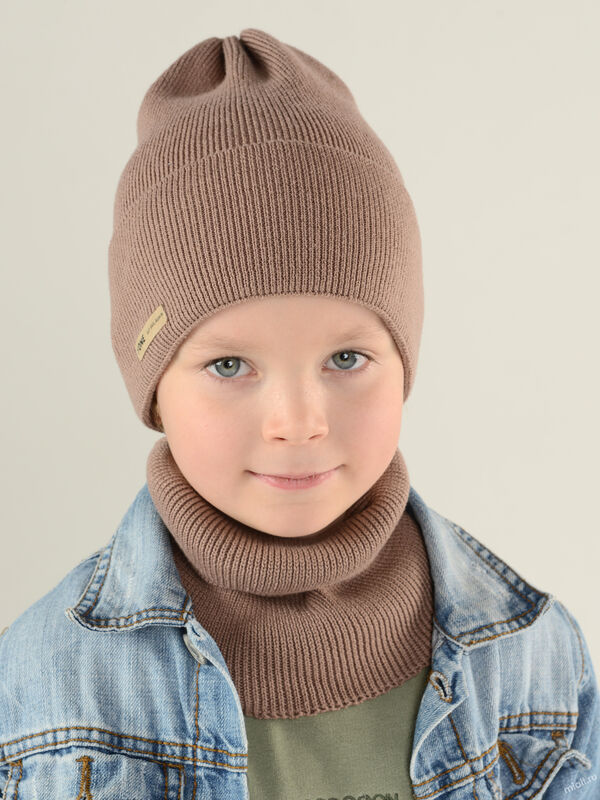 Дополнение: Комплект шапка+шарф-труба. Шапка эластичная, с отворотом, декор - шеврон. Шарф-труба без декора, размер 19х21см