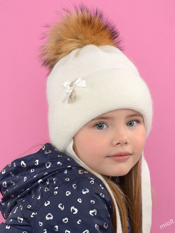 Дополнение: С отворотом, на подкладке с утеплителем, с завязками. Помпон натуральный на кнопке. Декор- бант, подвеска