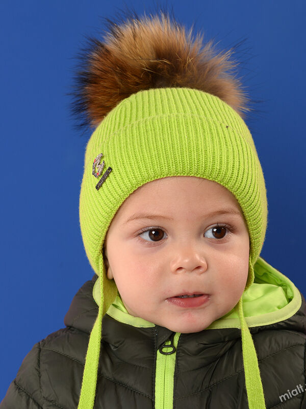 Дополнение: Утепленная шапочка с завязками, с отворотом. Помпон из натурального меха на кнопке. Декор - металлический элемент