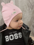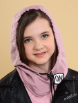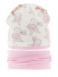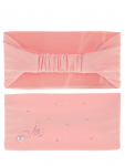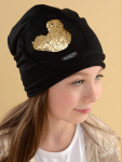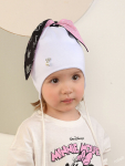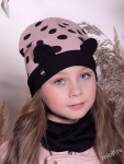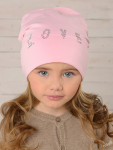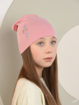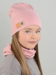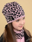 Комплект для девочки. Модель удлиненной формы с декором в виде бантов и стразовой надписи. Снуд двухслойный.