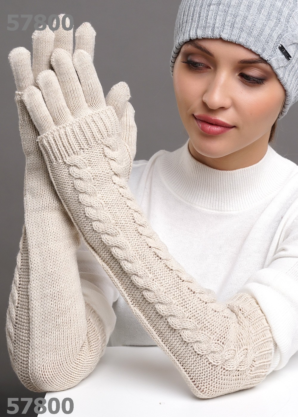 Описание: Женские перчатки, дополненные удлиненными митенками с фактурным переплетением косы - это уже всегда актуальная классика, которая должна быть в гардеробе у каждой модницы. Размер по ладони 16 см