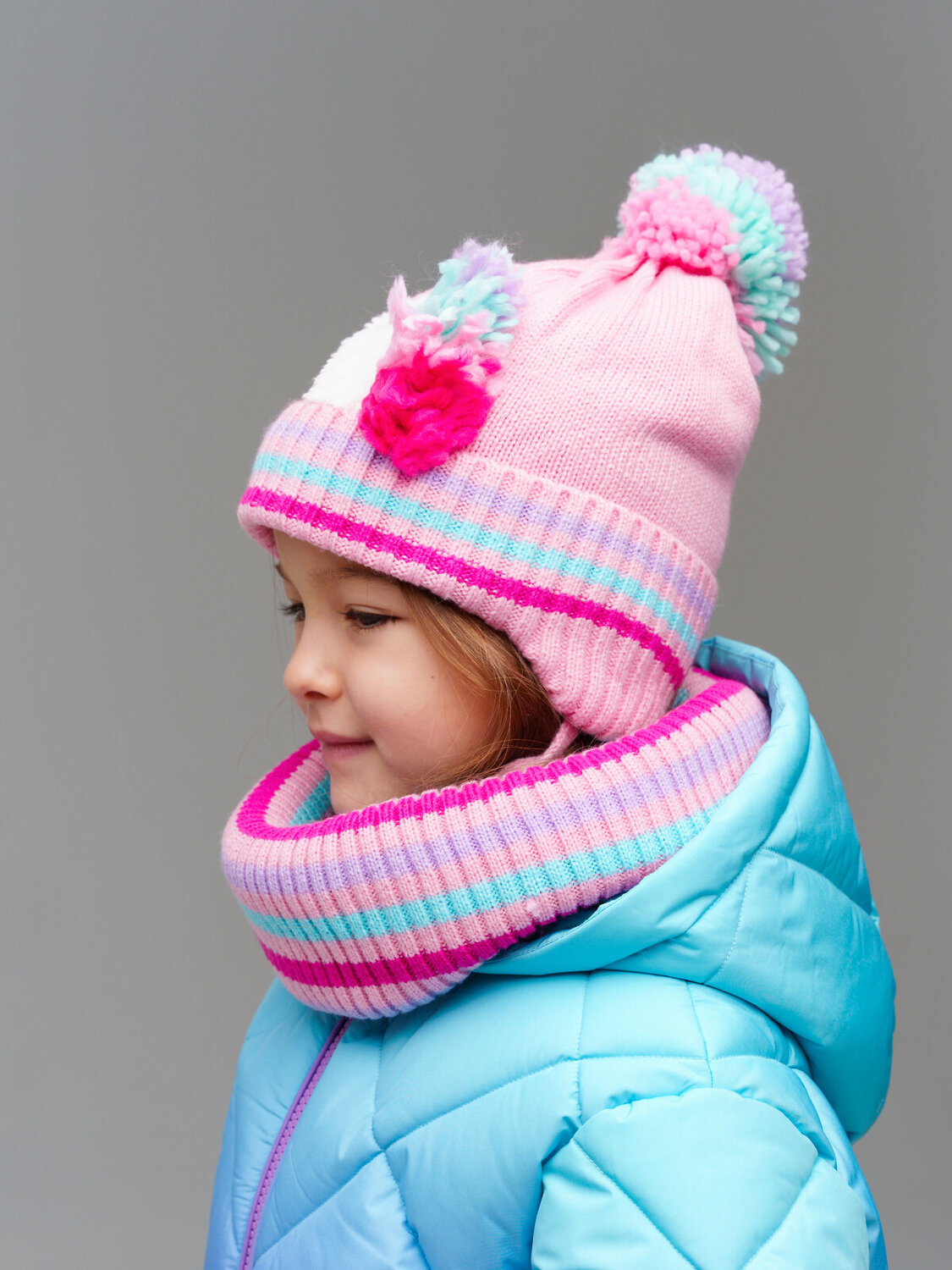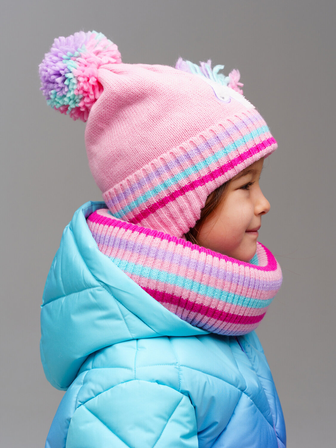 Комплект детский для девочки. Модная шапка и снуд из акрила отлично подойдут на холодное время года ( осень, зима). Модель из капсульной коллекции UNICORN KUROMI (ЮНИКОРН КОРОМИ). Соберите полный образ в едином стиле!