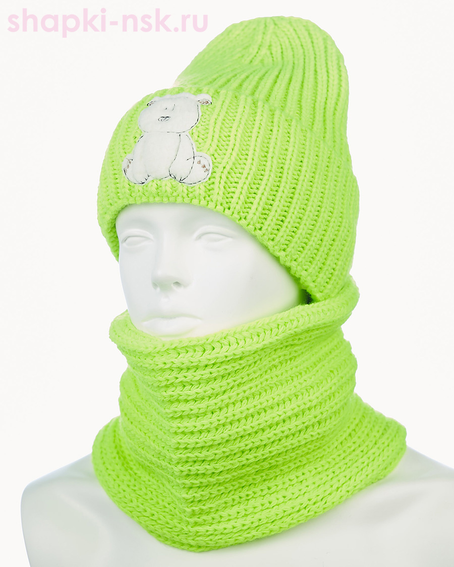 18-64-L Комплект для девочки флис (колпак+снуд) (52-54)