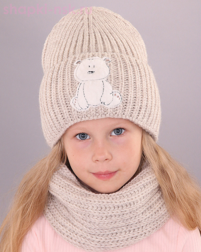 18-76-L Комплект для девочки флис (колпак+снуд) (52-54)