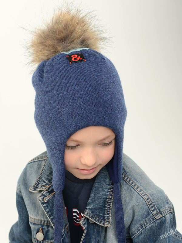 Дополнение: Шапка для мальчика на подкладке с утеплителем. Кроеные "ушки". Помпон натуральный на кнопке. Декор- жаккардовый орнамент, шеврон