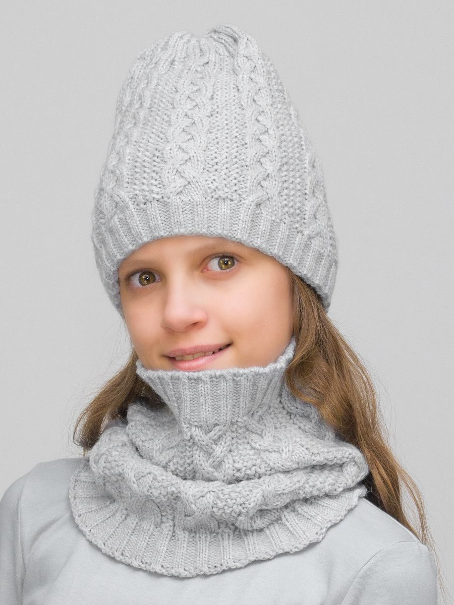 Комплект зимний для девочки шапка+снуд Найс (Цвет светло-серый), размер 54-56