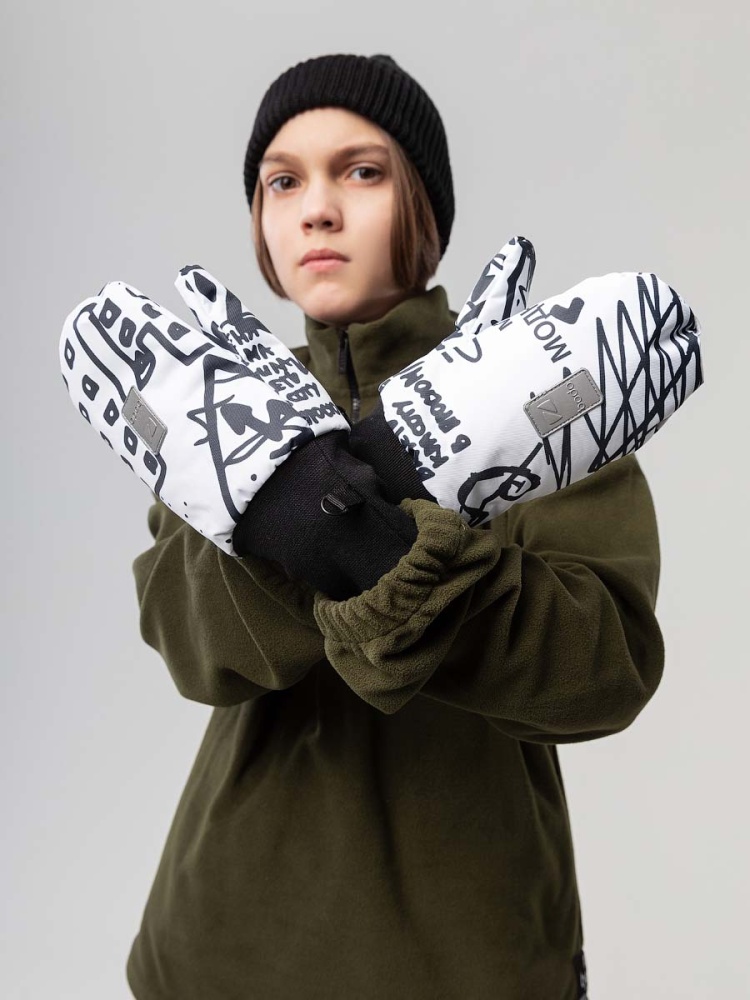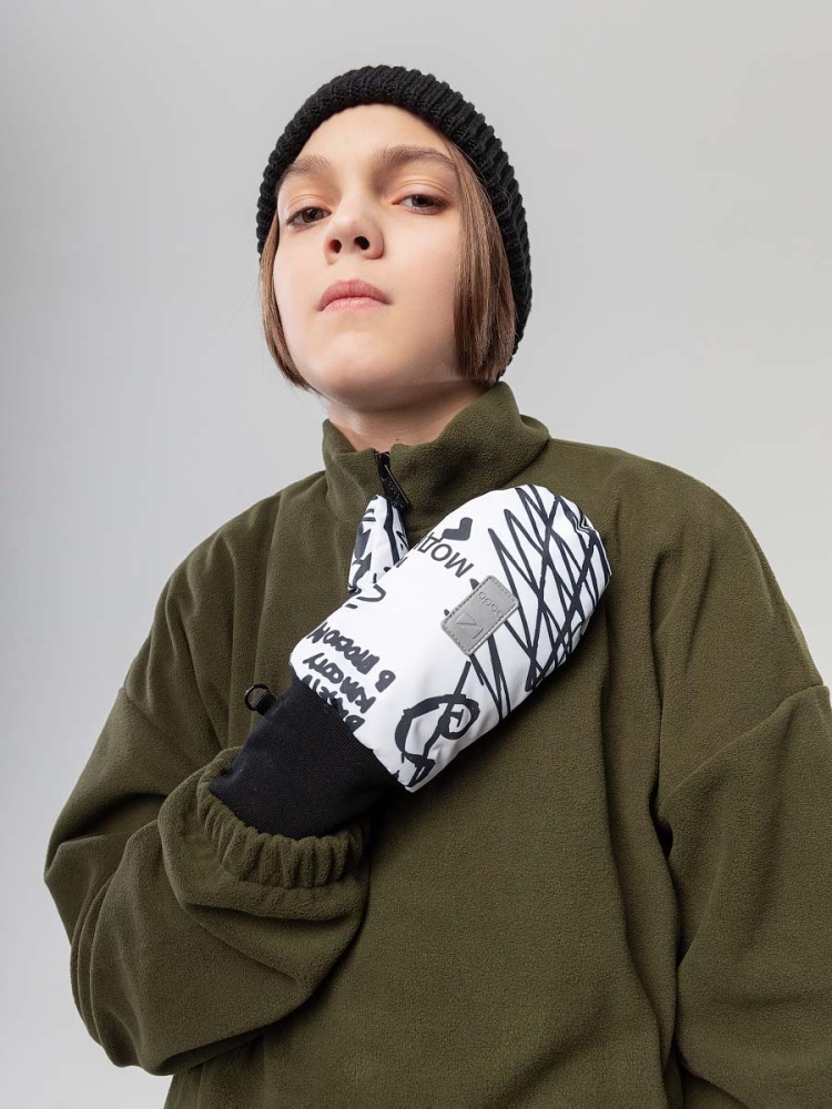 Материал мембранная ткань Состав 100% полиэстер Непромокаемые варежки из мембраны для мальчиков и девочек. Высокие рукавицы с манжетами из рибаны, сохраняющей тепло, карабин скрепляет варежки между собой. Материал верха: мембранная ткань 100% полиэстер, утеплитель Hetta 100 г/кв.м, подкладочный материал кулирная гладь 100% хлопок. Варежки для весны обеспечат рукам тепло и надежную защиту от ветра при температуре от +5 до -10 C. Замеры: длина 2-4 года - 22 см, 5-7 лет - 23,5 см, 8-10 лет - 24,5, 11-13 лет - 26 см. Ширина 2-4 года -11,5 см, 5-7 лет - 12 см, 8-10 лет - 12,5 см, 11-13 лет - 13 см
