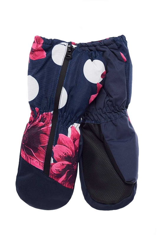 Сверху молния для удобного одевания. Температура эксплуатации: -30/+5 гр. С. Принт у варежек разный, смотрите фото. Ладонь выполнена из прорезииненной ткани, кроме цветов серый.меланж, св.розовый, св.серый, голубой.
