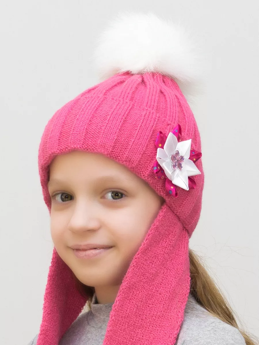 Шапка зимняя для девочки Аленка (Цвет брусничный), размер 52-54, шерсть 30%