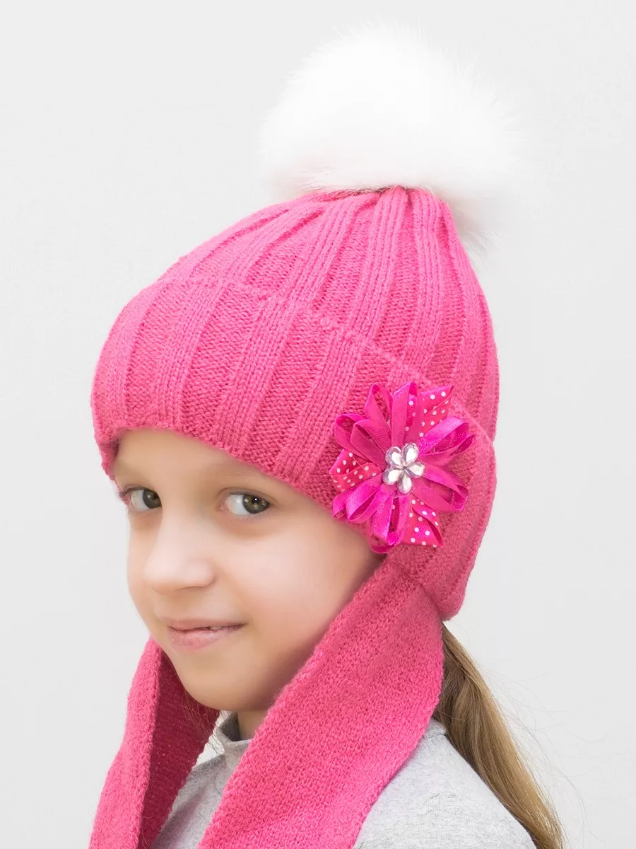 Шапка зимняя для девочки Аленка (Цвет малиновый), размер 52-54, шерсть 30%