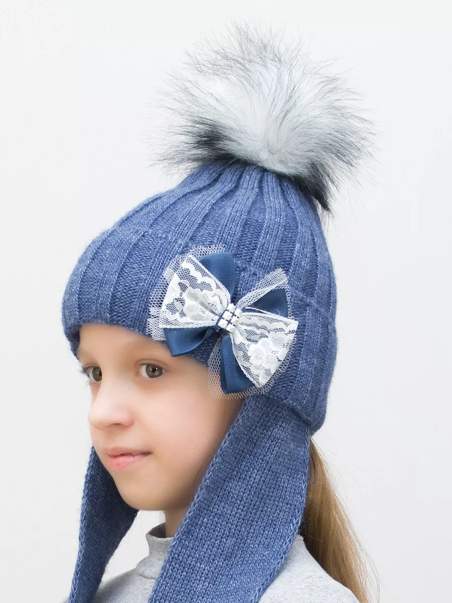Шапка зимняя для девочки Аленка (Цвет светло-синий), размер 52-54, шерсть 30%