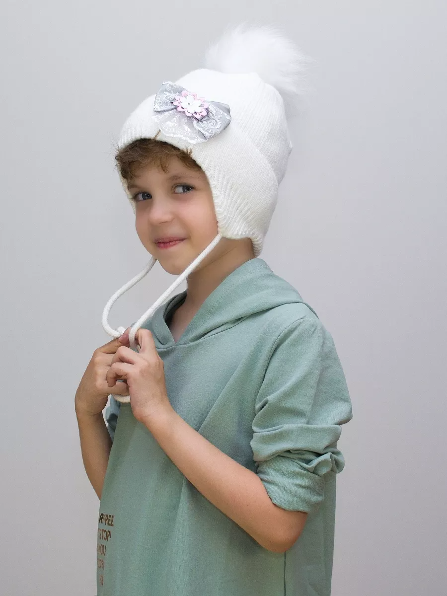 Шапка зимняя для девочки Бантик (Цвет белый).