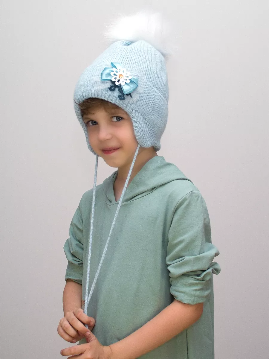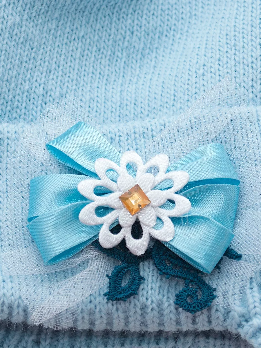 Шапка зимняя для девочки Бантик (Цвет голубо-бирюзовый).