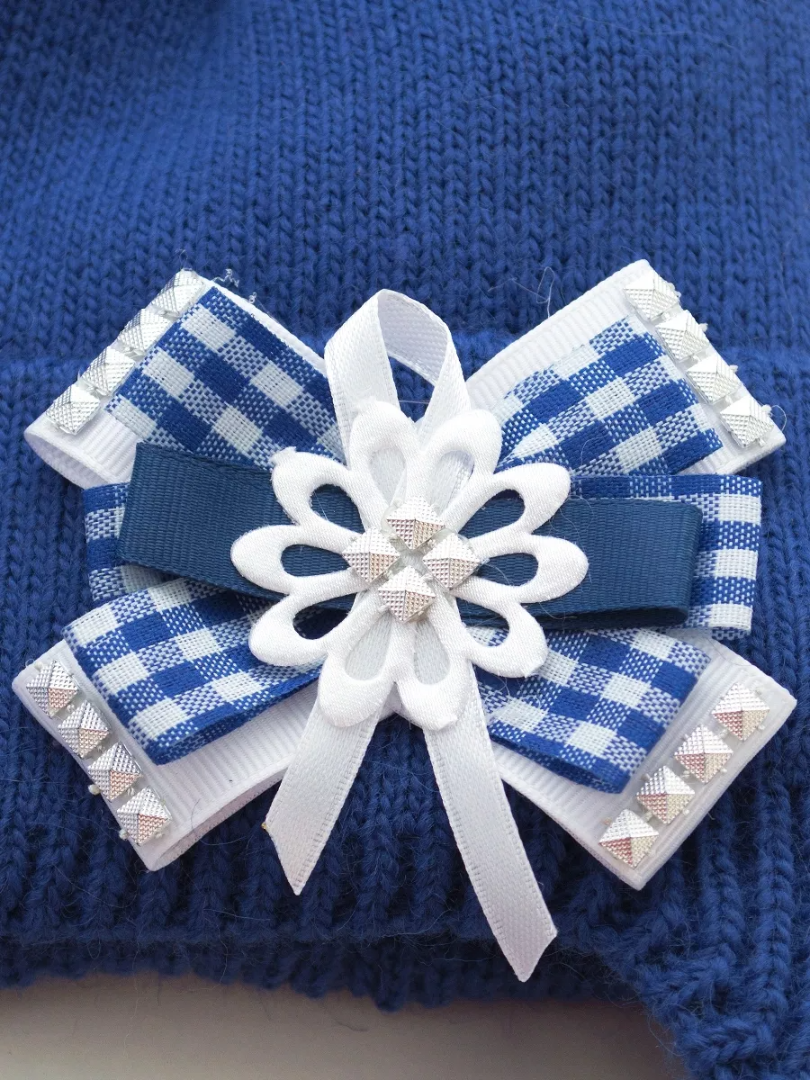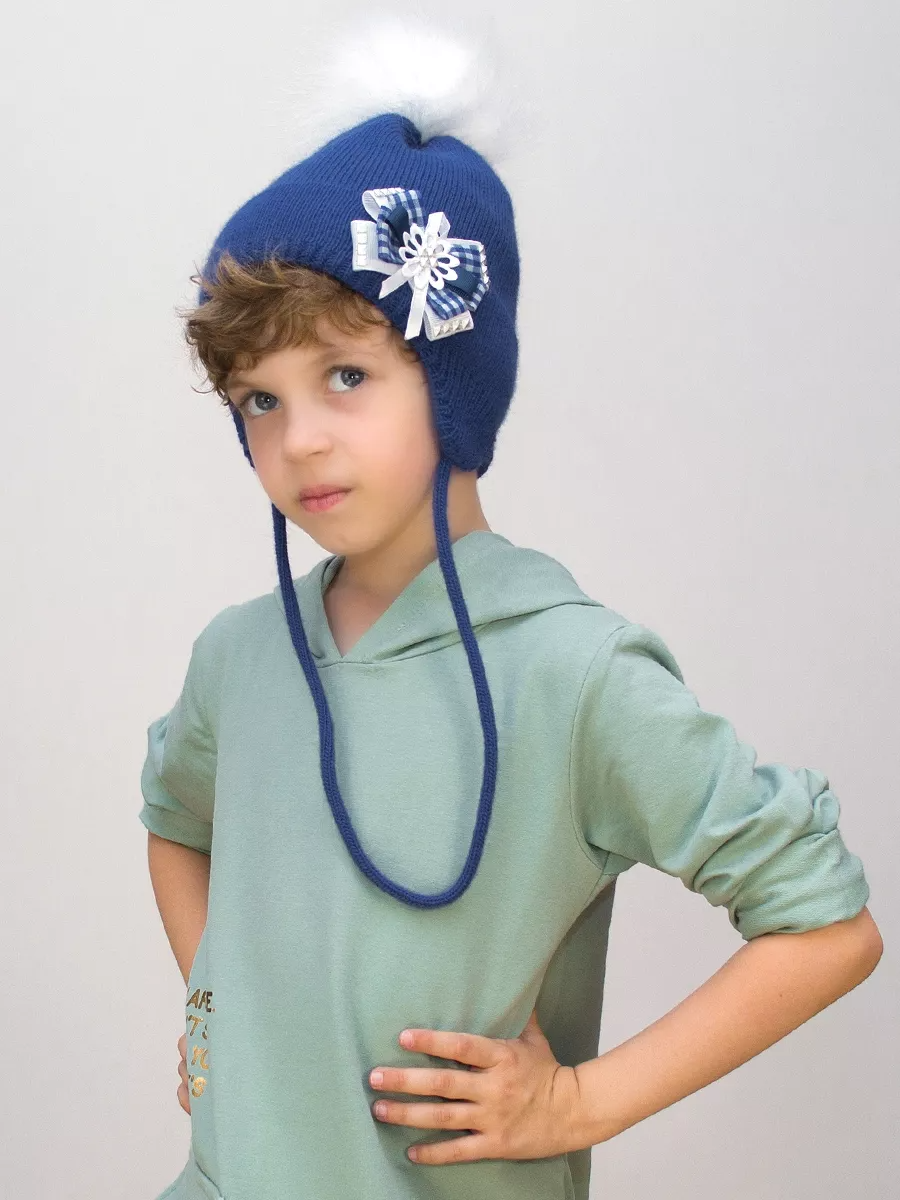 Шапка зимняя для девочки Бантик (Цвет синий).