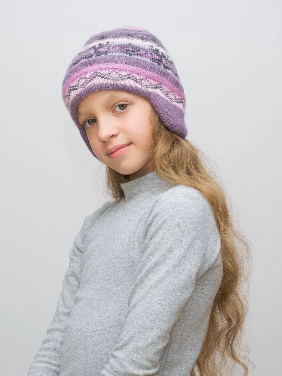 Шапка зимняя для девочки Мохер (Цвет светло-сиреневый), размер 54-56, шерсть 70%