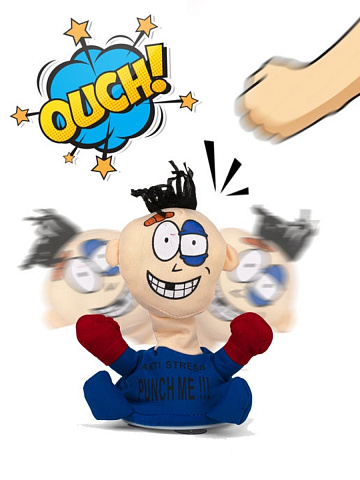 Мягкая Игрушка-антистресс Punch Me (Ударь меня) - это плюшевая электрическая игрушка которая издает звуки криков при ударах. Можно ударить для разрядки нервного напряжения или просто для смеха. Дети заливаются смехом при игре с такой игрушкой. При помощи этой необычной игрушки можно легко "спустить пар", если вы не в духе. Другими словами, игрушка "Ударь меня" может служить в качестве игрушки для битья, когда хотят избавиться от негативных эмоций. Игрушкой могут играть как дети в качестве развлечения, так и взрослые для снятия нервного напряжение. Несколько чувствительны зон - голова, торс, звуки будут разными при ударах.
