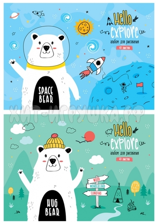 Альбом 40 л. А4 на склейке "Рисунки. Bear hug" в ассортименте ArtSpace А40кл_36142, А40кл_36142