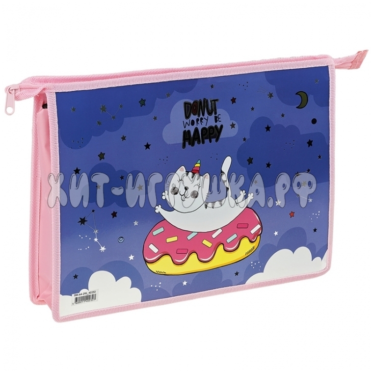 Папка для тетрадей 1 отделение, А4 ламинир. картон, фольга, на молнии "Happy Cat" ArtSpace ПМ-А4-291_42232, ПМ-А4-291_42232