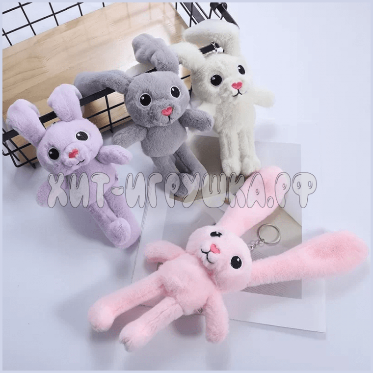 Брелок мягкая игрушка Заяц с тянущимися ушами / Зайка трансформер 25 см в ассортименте zai_tr25, zai_tr25