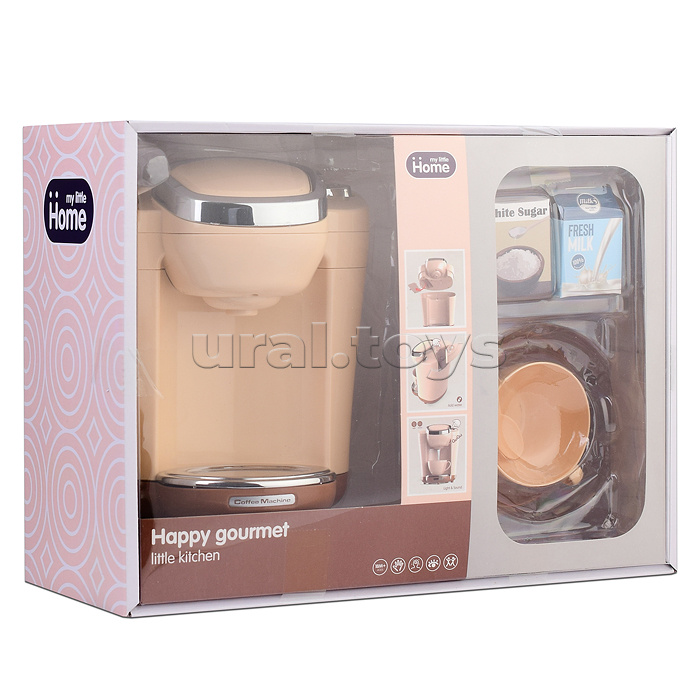 Бытовая техника "Кофемашина" с аксессуарами, бежевый , (свет, звук) в коробке