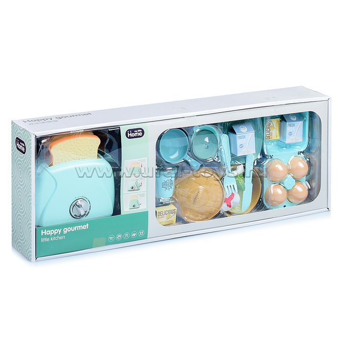 В наборе тостер, посуда (8) и продукты (12).