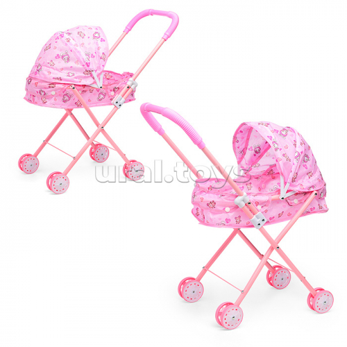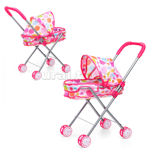 Коляска для кукол металлическая, складная, прогулочная с капюшоном, цвет красно-серая