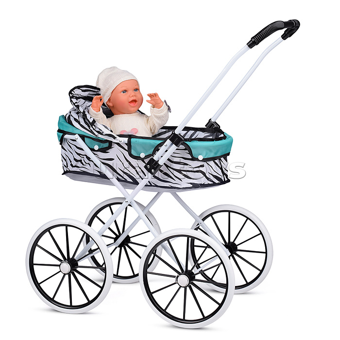Коляска для кукол, металлическая, складная, прогулочная с капюшоном и сумкой, цвет бирюзовый