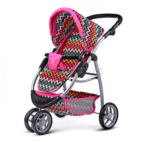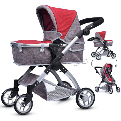 Коляска-трансформер для кукол, металлическая, регулируемая ручка, с корзиной, цвет зеленый