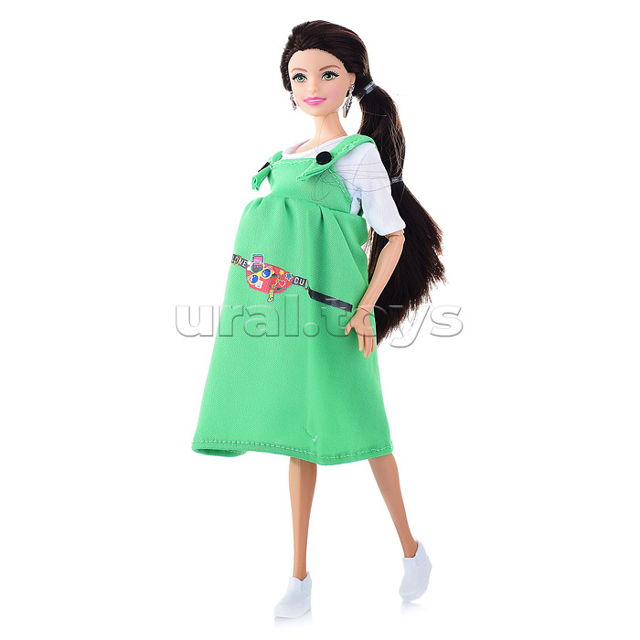 1 шт. Кукла «София беременная тремя малышами» ТМ «Карапуз» станет прекрасным подарком для вашей принцессы: рост куклы 29 см, руки и ноги сгибаются в суставах, 3 малыша прячутся в животике. Будущая мама София одета в базовую кофточку и яркий зелёный сарафан. Образ куколки дополняют модные крупные серьги. Одежду и аксессуары легко снять и надеть. С такой модной куклой девочке будет интересно и весело играть: благодаря тому, что руки и ноги куклы подвижны, им можно придать любое положение. У Софии длинные красивые волосы, которые хозяйка куклы сможет заплетать в разные причёски. Детально проработанный дизайн игрушки вдохновит девочку на новые игровые сюжеты. Игра с куклой развивает чувство стиля и вкус, речь, воображение, социально-коммуникативные навыки.