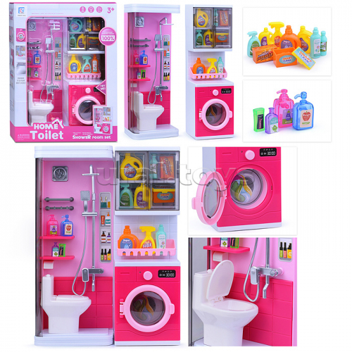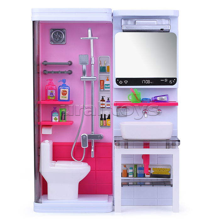 Набор мебели для кукол "Ванная комната" (унитаз, душ, раковина,зеркало) с аксессуарами, на батарейках, в коробке