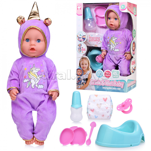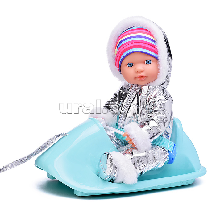 Пупс "Андрейка" на санях (пьет, писает) с аксессуарами, в коробке