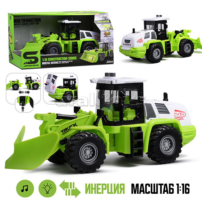 Трактор "Строитель" 1:16 (свет, звук) в коробке (зеленый)