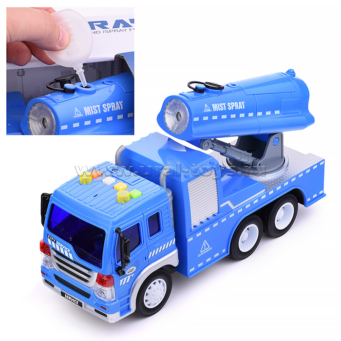 Машина "Распылитель" 1:16 (свет, звук, пар) на батарейках, в коробке (цвет синий)
