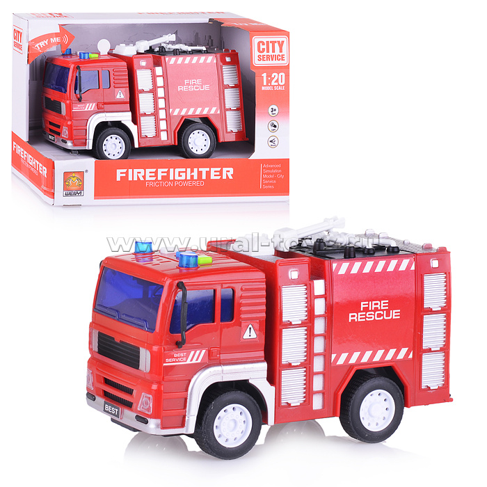 Машина "Пожарная" 1:20 (свет, звук) на батарейках, в коробке